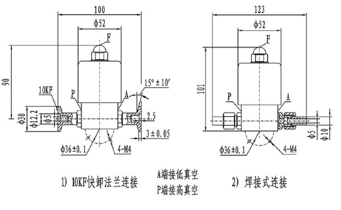 電磁高真空帶充氣閥GDC-Q5連接在高低真空系統(tǒng)上,該閥通電閥板打開,同時封閉充氣口,將P、A端管路接通;斷電時閥板關閉,切斷P、A端管路,保證系統(tǒng)的真空度,同時打開充氣口,通過F端向A端充氣。電磁高真空擋板閥GDC-5連接在高低真空管路上,用來接通或切斷真空系統(tǒng)的氣流。GDC-Q5型、GDC-5型真空閥適用的工作介質為潔凈的空氣和非腐蝕性氣體。